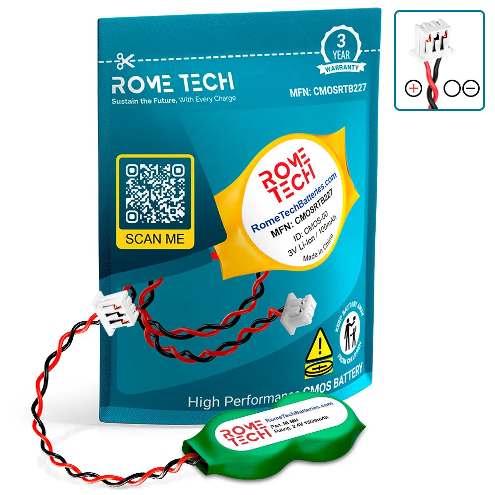 The Rome Tech motherboard battery is excellent for replacing a dead OEM battery. High-quality materials and workmanship guarantee a long service life, even under extreme conditions. As a result, our battery is an ideal choice for devices that require a reliable and long-lasting power source.