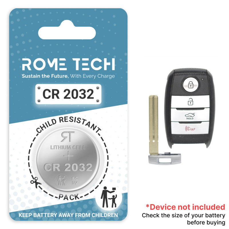 Kia Rio 2014-2017 Key Fob batteries are the highest-quality lithium-ion batteries on the market. High power ensures efficient operation and long service life of up to 10 years. Quality, efficiency, and reliability are the main principles that guide us in producing our products. All Rome Tech batteries come with MSDS, UN38.3, and other certifications.